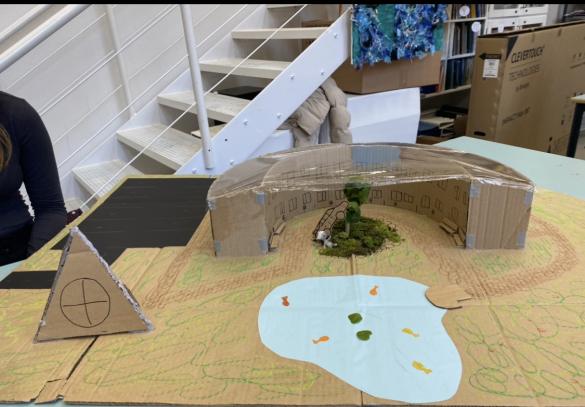 Herefter havde vi en rundvisning i Økobyen Dyssekilde, hvor vi Erwin viste os rundt og vi hørte om visionerne, husene og tankerne bag området. Dagen sluttede af på skolen, hvor eleverne med - udgangspunkt i deres fagpakke - skulle arbejde praktisk med dagens informationer om arkitekturpsykologi, miljø, domes og kirkerum. Eleverne byggede derfor enten kirker eller boliger, hvor de skulle omsætte faglig viden og inspiration fra dagen til konkrete, kreative modeller.