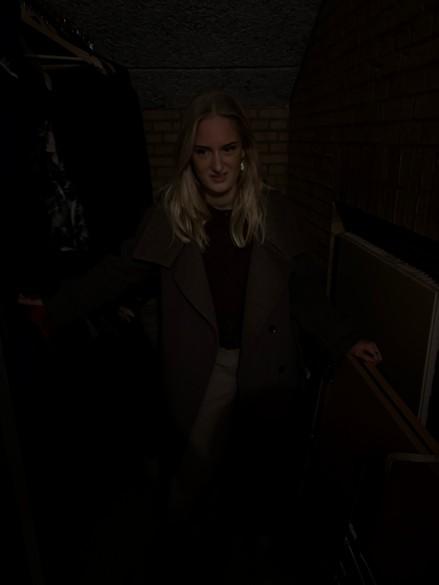 Lever i en mørk hule. Hun er lænket om ben og hals og kan kun se lige frem