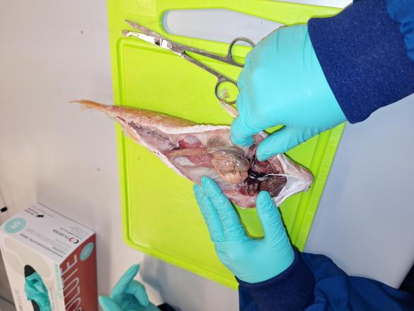 Ud over uddannelsesmuligheder, fik eleverne også lov at arbejde som laboranter i laboratoriet. Her dissekerede de blandt andet sild og undersøgte tarmindhold for mikroplastik - som er et stigende miljømæssigt problem.