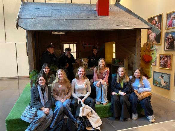 Vi nød vores frokost i det dejlige forårsvejr ved Emil Holms kanal. Derefter havde vi fået den unikke mulighed, at komme indenfor i DR Byen og tale med en af de ansatte i DRs Arkiv, Louise Brock, som har studeret musikvidenskab. Hun fortalte dels om sin karrierevej, og dels om hvordan man arbejder i DRs arkiv. Meget spændende arbejdsplads. Vi sluttede af med at besøge Bamse og Kylling...