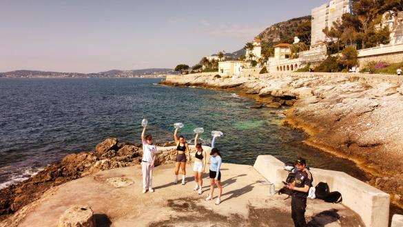 På billederne ses dramaholdet igang med at spille scener fra "Døgnkiosken" og "Fight Club", mens 'behind the scenes' laver kulisser i form af en blodrød måne, træer mm. Koret øver både sangene "Inderst Inde" og "Romeo" og nyere hits som "Luk mig ind" og "Smelter under månen".