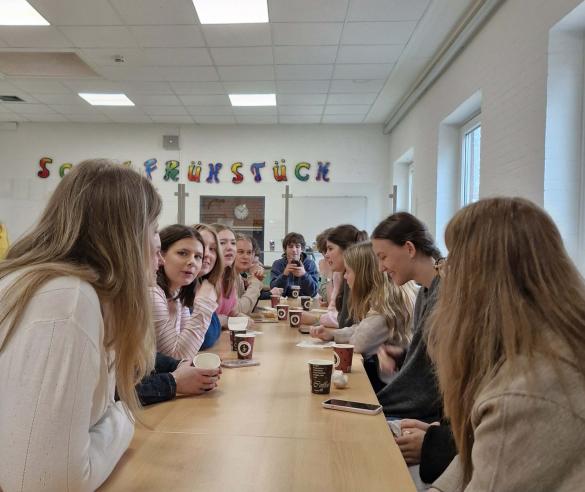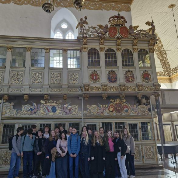Tirsdag: morgenmad på skolen med de tyske værter. Vi var med i tysk,- engelsk- og kemiundervisningen. Herefter fin guidet tur i den gamle by, hvor vi så danske spor, bl.a. monogrammer fra Frederik 4.i Garnisonskirken. Byen har jo tidligere været dansk! Sidst men ikke mindst: en tur i biffen!
