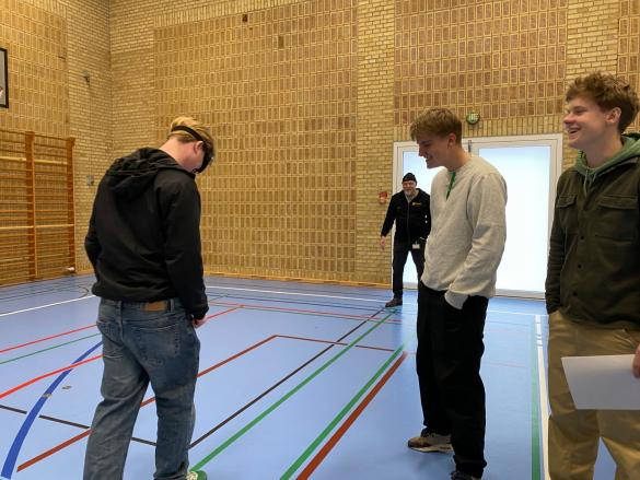 SSP havde medbragt promillebriller  - eleverne skulle holde balancen om gå lige på en linje. Det var svært...